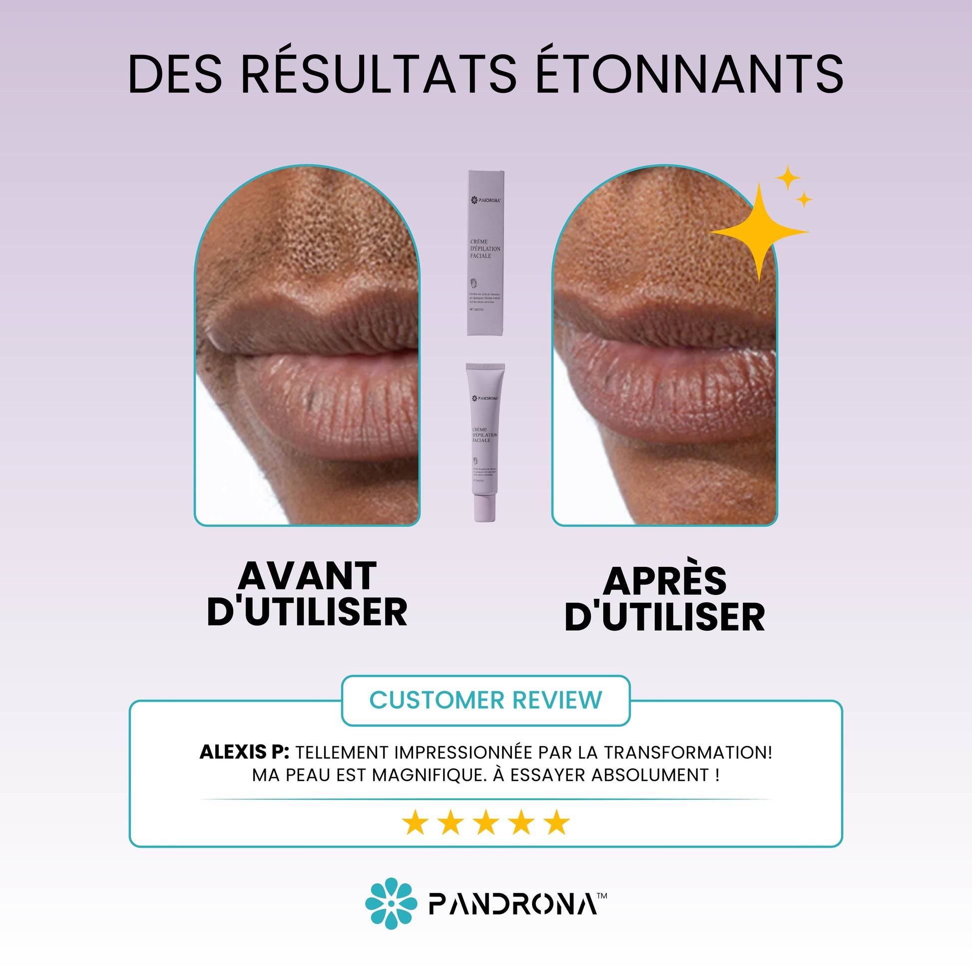 Pandrona™ SmoothErase sérum innovant agit dès la première application pour ralentir la repousse des poils, tout en laissant la peau douce et apaisée.